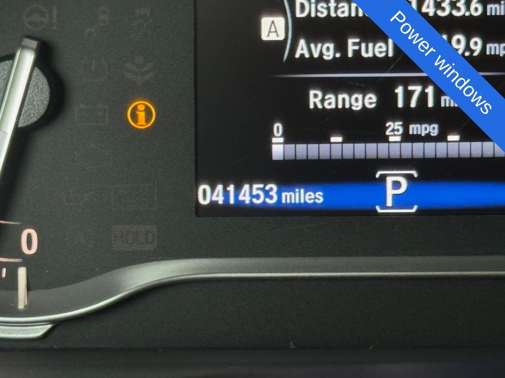 lind Spot Information (BSI) System warning, Bluetooth® Hands-Free Link, Brake assist, Bumpers: body-color, Compass, Delay-off headlights, Driver door bin, Driver vanity mirror, Driver's Seat Mounted Armrest, Dual front impact airbags, Dual front side impact airbags, Electronic Stability Control, Exterior Parking Camera Rear, Four wheel independent suspension, Front anti-roll bar, Front Bucket Seats, Front dual zone A/C, Front reading lights, Fully automatic headlights, Garage door transmitter: HomeLink, Heated door mirrors, Heated Front Bucket Seats, Heated front seats, Heated steering wheel, Honda Satellite-Linked Navigation System, Illuminated entry, Leather Seat Trim, Low tire pressure warning, Navigation system: Honda Satellite-Linked Navigation System, Occupant sensing airbag, Outside temperature display, Overhead airbag, Overhead console, Panic alarm, Passenger door bin, Passenger seat mounted armrest, Passenger vanity mirror, Power door mirrors, Power passenger seat, Power steering, Radio data system, Radio: 540-Watt Premium Audio System w/8 Speakers, Rear air conditioning, Rear anti-roll bar, Rear reading lights, Rear seat center armrest, Rear step bumper, Rear window defroster, Remote keyless entry, Security system, SiriusXM, Speed control, Speed-sensing steering, Split folding rear seat, Steering wheel mounted audio controls, Tachometer, Telescoping steering wheel, Tilt steering wheel, Traction control, Trip computer, Turn signal indicator mirrors, Variably intermittent wipers, Wheels: 18" Exclusive Gloss Black Alloy, Black w/Leather Seat Trim, Apple CarPlay/Android Auto, Front fog lights, Memory seat, Power driver seat, Power moonroof, Power windows.