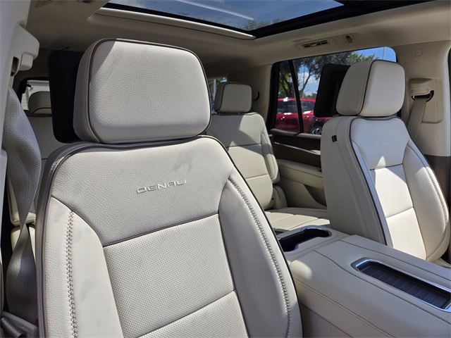 eo, Apple CarPlay/Android Auto, Auto High-beam Headlights, Auto-dimming door mirrors, Auto-dimming Rear-View mirror, Auto-leveling suspension, Automatic Emergency Braking, Automatic temperature control, BLUETOOTH / HANDSFREE, Bodyside moldings, Bose 14-Speaker Surround w/CenterPoint, Brake assist, Bright Front & Rear Door Sill Plates, Bumpers: body-color, Chrome Door Handles w/Body-Color Strip, CLEAN CARFAX!, Compass, Delay-off headlights, Denali Reserve Package, Driver door bin, Driver vanity mirror, Dual Exhaust System, Dual front impact airbags, Dual front side impact airbags, Dual-Pane Panoramic Power Sunroof, Electronic Stability Control, Emergency communication system: OnStar and GMC connected services capable, Enhanced Automatic Emergency Braking, Enhanced Automatic Parking Assist, Extra Capacity Cooling System, Floor Console, Following Distance Indicator, Forward Collision Alert, Four wheel independent suspension, Front & Rear Park Assist, Front anti-roll bar, Front Bucket Seats, Front Center Armrest, Front dual zone A/C, Front fog lights, Front Pedestrian Braking, Front reading lights, Fully automatic headlights, Galvano Bodyside Moldings, Garage door transmitter, Glass Breakage Sensor, Hands-Free Power Programmable Rear Liftgate, HD Surround Vision, Heads-Up Display, Heated 2nd Row Outboard Position Seats, Heated door mirrors, Heated Driver & Front Passenger Seats, Heated front seats, Heated rear seats, Heated Steering Wheel, Heated steering wheel, Hitch View, Illuminated entry, Inside Rear-View Auto-Dimming Mirror, Inside Rearview Auto-Dimming Rear Camera Mirror, Integrated Trailer Brake Controller, IntelliBeam Automatic High Beam On/Off, Lane Change Alert w/Side Blind Zone Alert, Lane Keep Assist w/Lane Departure Warning, License Plate Front Mounting Package, LOCAL TRADE IN!, Low tire pressure warning, Magnetic Ride Control Suspension, Max Trailering Package, Memory seat, NAVIGATION, Navigation System, NON SMOKER VEHICLE, Occupant sensing airbag, Outside Heated Power-Adjustable Mirrors, Outside temperature display, Overhead airbag, Overhead console, Panic alarm, Passenger door bin, Passenger vanity mirror, Perforated Heated & Ventilated Dr & Frt Pass Seats, Perforated Leather Seating Surfaces, Power door mirrors, Power driver seat, Power Liftgate, Power passenger seat, Power Release 2nd Row Bucket Seats, Power steering, Power Tilt & Telescopic Steering Column, Power windows, Power-Retractable Assist Steps, Preferred Equipment Group 5SA, PROFESSIONALLY DETAILED FOR DELIVERY!, Rain sensing wipers, Rear air conditioning, Rear anti-roll bar, Rear Camera Mirror Washer, Rear Cross Traffic Alert, Rear Pedestrian Alert, Rear reading lights, Rear Seat Media System, Rear window defroster, Rear window wiper, Remote keyless entry, Reverse Automatic Braking, Roof rack: rails only, Safety Alert Seat, Security system, SiriusXM w/360L, Smart Trailer Integration Indicator, Speed control, Speed-sensing steering, Split folding rear seat, Spoiler, Steering wheel memory, Steering wheel mounted audio controls, SUNROOF/MOONROOF, Super Cruise, SUPER LOW MILES!, Tachometer, Telescoping steering wheel, Theft-Deterrent Alarm System, Tilt steering wheel, Traction control, Trailer Side Blind Zone Alert, Trip computer, Turn signal indicator mirrors, Universal Home Remote, Variably intermittent wipers, Vehicle Inclination Sensor, Vehicle Interior Movement Sensor, Ventilated front seats, Voltmeter, Wheel Locks (Set of 4) (LPO), Wheels: 22" x 9" Bright Mac