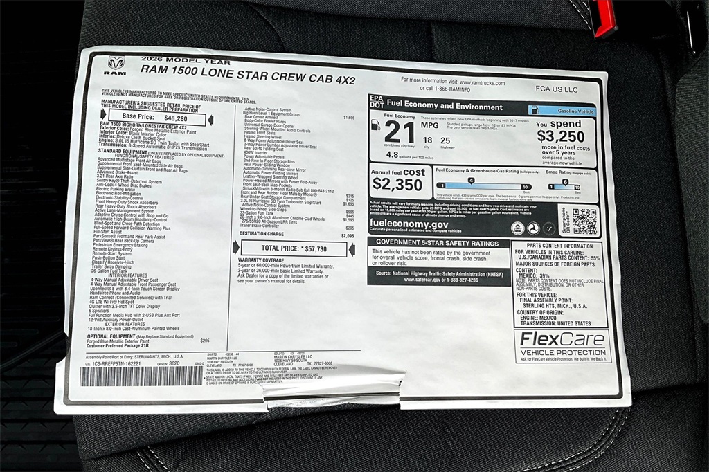 Forged Blue Metallic 2026 Ram 1500 Big Horn/Lone Star RWD 8-Speed Automatic 3.0L I6 Prices do not include Tax, Title, License and Documentary Fee. Price does include: $3500 - 2026 National Retail Consumer Cash . Exp. 11/03/2025