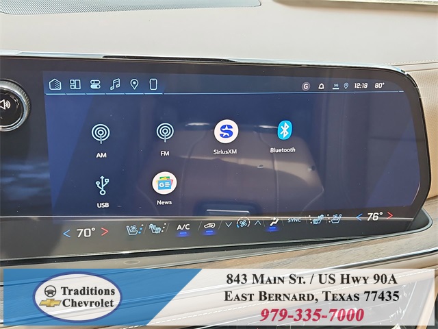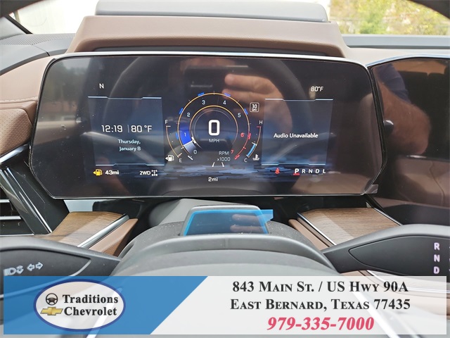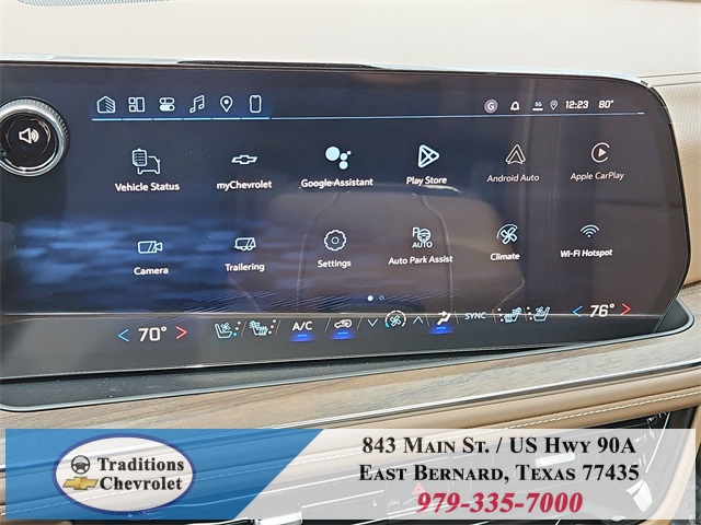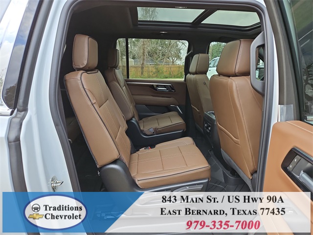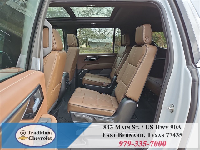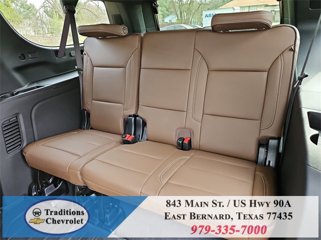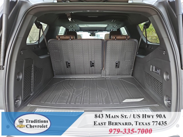 er Floor Liners, All-Weather Cargo Mat, and First and Second Rows Premium Floor Liners), 10 Speakers, 15" Diagonal Multi-Color Head-Up Display, 3.23 Rear Axle Ratio, 3rd Row 60/40 Power-Folding Split-Bench, 3rd row seats: split-bench, 4-Way Power Driver Lumbar Seat Adjuster, 4-Way Power Front Passenger Lumbar Seat Adjuster, 4-Wheel Disc Brakes, 8-Way Power Driver Seat Adjuster, 8-Way Power Front Passenger Seat Adjuster, ABS brakes, Adaptive suspension, Air Conditioning, Alloy wheels, AM/FM radio: SiriusXM with 360L, Apple CarPlay/Android Auto, Auto High-beam Headlights, Auto-dimming door mirrors, Auto-dimming Rear-View mirror, Auto-leveling suspension, Automatic temperature control, Bose 10-Speaker Surround with CenterPoint, Brake assist, Bright Front and Rear Door Sill Plates, Bumpers: body-color, Chrome Door Handles with Body-Color Strip, Compass, Delay-off headlights, Driver door bin, Driver vanity mirror, Dual Exhaust System, Dual front impact airbags, Dual front side impact airbags, Electronic Stability Control, Emergency communication system: OnStar Services capable, Exterior Parking Camera Rear, Four wheel independent suspension, Front anti-roll bar, Front Bucket Seats, Front Center Armrest, Front dual zone A/C, Front fog lights, Front LED Fog Lamps, Front reading lights, Fully automatic headlights, Garage door transmitter, Heads-Up Display, Heated 2nd Row Outboard Seats, Heated door mirrors, Heated Driver and Front Passenger Seats, Heated front seats, Heated Power-Adjustable Outside Mirrors, Heated rear seats, Heated Steering Wheel, Heated steering wheel, Illuminated entry, Inside Rearview Auo-Dimming Rear Camera Mirror, Interior Camera, LED Headlamps with LED Daytime Running Lamps, LED Tail Lamps, Low tire pressure warning, Magnetic Ride Control Suspension, Memory seat, Memory Settings, Navigation system: Google built-in compatibility (select service plan required, terms and limitations apply), Occupant sensing airbag, Outside temperature display, Overhead airbag, Overhead console, Panic alarm, Passenger door bin, Passenger vanity mirror, Perforated Heated and Ventilated Seats, Perforated Leather Seating Surfaces, Power door mirrors, Power driver seat, Power Liftgate, Power passenger seat, Power Release 2nd Row Bucket Seats, Power steering, Power Tilt and Telescopic Steering Column, Power windows, Power-Sliding Center Floor Console, Radio data system, Radio: 17.7" Diagonal Advanced Color LCD Display, Rain sensing wipers, Rear air conditioning, Rear anti-roll bar, Rear Power Liftgate, Rear reading lights, Rear window defroster, Rear window wiper, Remote keyless entry, Security system, SiriusXM with 360L Trial Subscription, Speed control, Speed-sensing steering, Split folding rear seat, Spoiler, Steering wheel memory, Steering wheel mounted audio controls, Tachometer, Telescoping steering wheel, Tilt steering wheel, Traction control, Trip computer, Turn signal indicator mirrors, Universal Home Remote, Variably intermittent wipers, Ventilated front seats, Voltmeter, Wheel Locks (set of 4), Wheels: 22" x 9" Bright Machined Aluminum, Wireless Apple CarPlay/Wireless Android Auto, and Wireless Phone Charging.