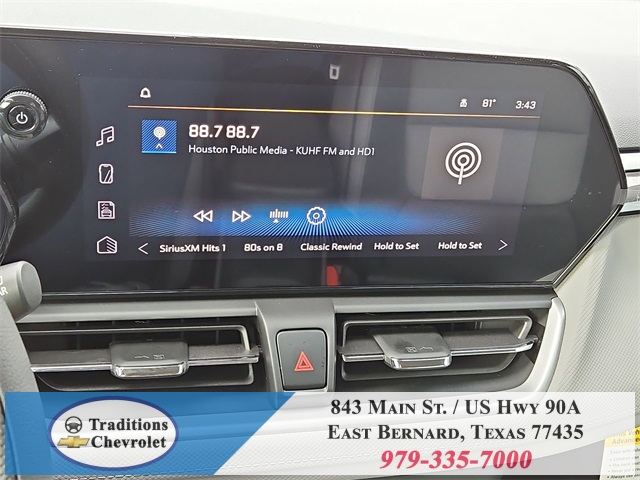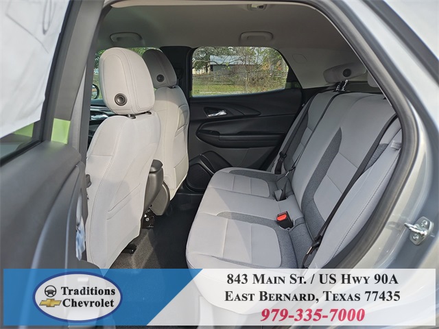 iriusXM, Auto High-beam Headlights, Brake assist, Bumpers: body-color, Cloth Seat Trim, Compass, Delay-off headlights, Driver door bin, Driver vanity mirror, Dual front impact airbags, Dual front side impact airbags, Electronic Stability Control, Emergency communication system: OnStar and Chevrolet connected services capable, Exterior Parking Camera Rear, Flat-Folding Front Passenger Seatback, Front anti-roll bar, Front Bucket Seats, Front Center Armrest, Front License Plate Bracket, Front reading lights, Front wheel independent suspension, Fully automatic headlights, Illuminated entry, Knee airbag, Low tire pressure warning, Mechanical Jack with Tools, Occupant sensing airbag, Overhead airbag, Overhead console, Panic alarm, Passenger door bin, Passenger vanity mirror, Power door mirrors, Power steering, Power windows, Radio data system, Radio: AM/FM Stereo Audio System, Rear side impact airbag, Rear window defroster, Rear window wiper, Reinforced Electric Heater/Defroster System, Remote keyless entry, Ride and Handling Suspension, Security system, SiriusXM Trial Subscription, Speed control, Split folding rear seat, Spoiler, Steering wheel mounted audio controls, Tachometer, Telescoping steering wheel, Tilt steering wheel, Traction control, Trip computer, Variably intermittent wipers, Wheels: 17" Silver-Painted Aluminum, and Wireless Apple CarPlay/Android Auto.