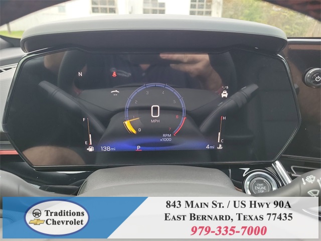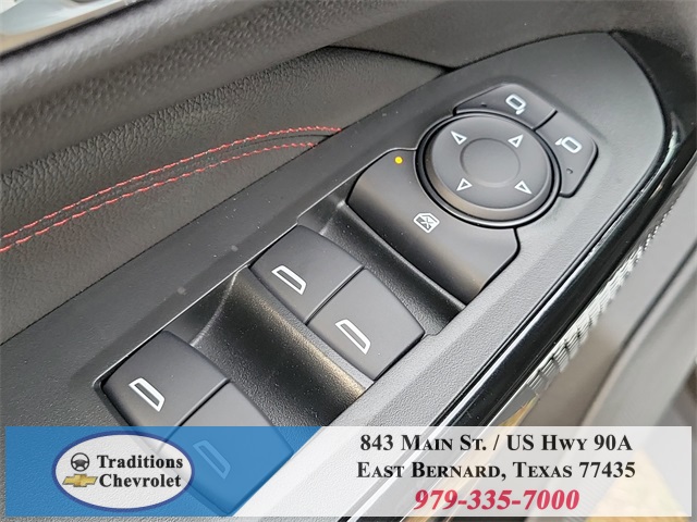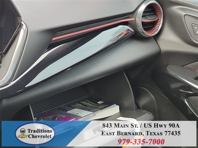 loy wheels, AM/FM radio: SiriusXM, Auto High-beam Headlights, Automatic temperature control, Brake assist, Bumpers: body-color, Compass, Delay-off headlights, Driver door bin, Driver vanity mirror, Dual front impact airbags, Dual front side impact airbags, Electronic Stability Control, Emergency communication system: OnStar One Essentials, Evotex Seat Trim, Exterior Parking Camera Rear, Front anti-roll bar, Front Bucket Seats, Front Center Armrest, Front reading lights, Front wheel independent suspension, Fully automatic headlights, Heated door mirrors, Heated Driver and Front Passenger Seats, Heated front seats, Heated steering wheel, Illuminated entry, Leather steering wheel, Low tire pressure warning, Occupant sensing airbag, Outside temperature display, Overhead airbag, Overhead console, Panic alarm, Passenger door bin, Passenger vanity mirror, Power door mirrors, Power driver seat, Power steering, Power windows, Premium audio system: Chevrolet Infotainment 3, Radio data system, Radio: AM/FM Stereo Audio System, Rear window defroster, Rear window wiper, Remote keyless entry, Security system, SiriusXM Trial Subscription, Speed control, Split folding rear seat, Spoiler, Sport steering wheel, Steering wheel mounted audio controls, Tachometer, Telescoping steering wheel, Tilt steering wheel, Traction control, Trip computer, Variably intermittent wipers, Wheels: 19" Black-Painted Machined Aluminum, and Wireless Apple CarPlay/Wireless Android Auto.