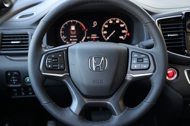 pension, Front anti-roll bar, Front Bucket Seats, Front dual zone A/C, Front fog lights, Fully automatic headlights, Garage door transmitter: HomeLink, Heated door mirrors, Heated Front Bucket Seats, Heated front seats, Heated steering wheel, Honda Satellite-Linked Navigation System, Illuminated entry, Leather Seat Trim, Leather steering wheel, Low tire pressure warning, Memory seat, Navigation system: Honda Satellite-Linked Navigation System, Outside temperature display, Panic alarm, Power door mirrors, Power driver seat, Power moonroof, Power passenger seat, Power steering, Power windows, Rear air conditioning, Rear anti-roll bar, Rear window defroster, Remote keyless entry, Security system, SiriusXM, Speed control, Speed-sensing steering, Split folding rear seat, Steering wheel mounted audio controls, Tachometer, Telescoping steering wheel, Tilt steering wheel, Traction control, Trip computer, Turn signal indicator mirrors, Variably intermittent wipers, Wheels: 18" TrailSport Pewter Gray Alloy. Price includes: $2500 - 2025 Ridgeline Sales Credit. Exp. 11/03/2025