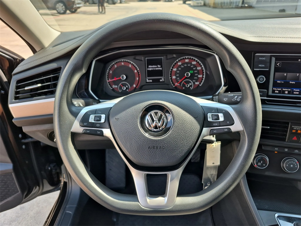 Black Uni 2021 Volkswagen Jetta 1.4T S FWD 8-Speed Automatic 1.4L TSI Dark Beige/Black w/Perforated Leather Seat Trim.