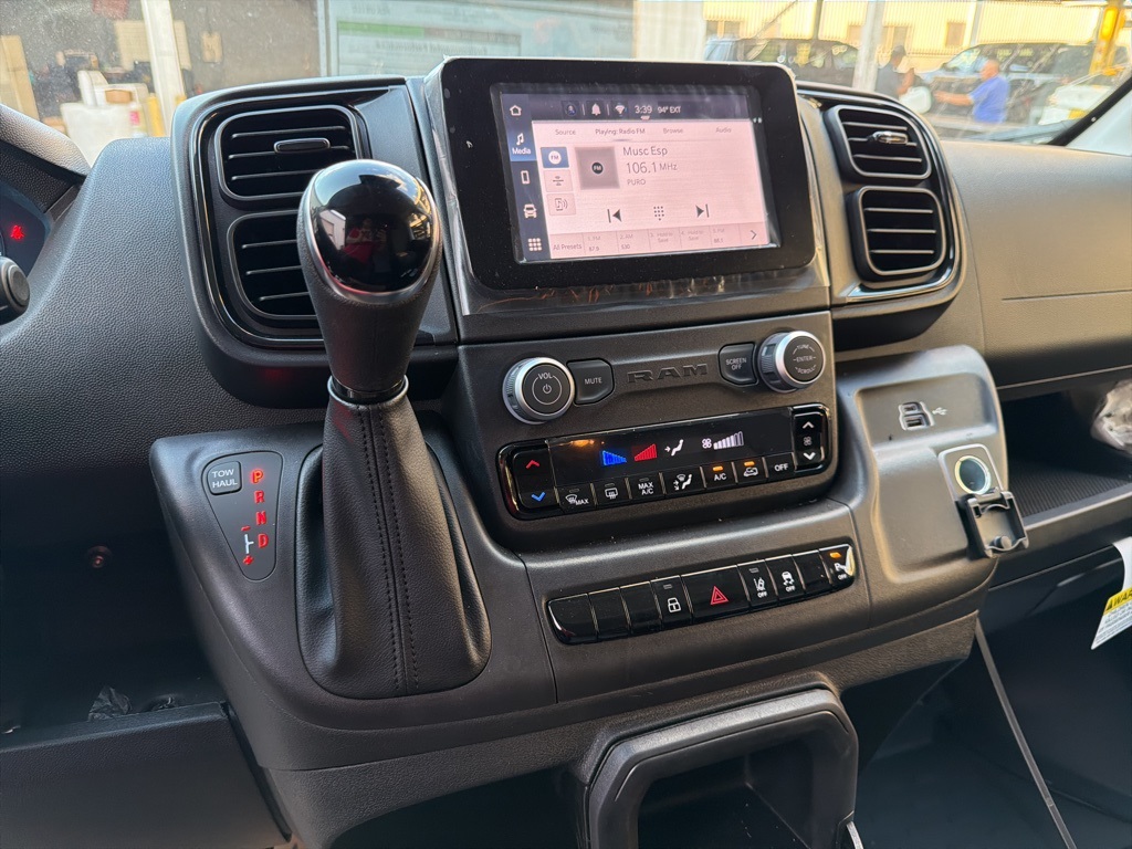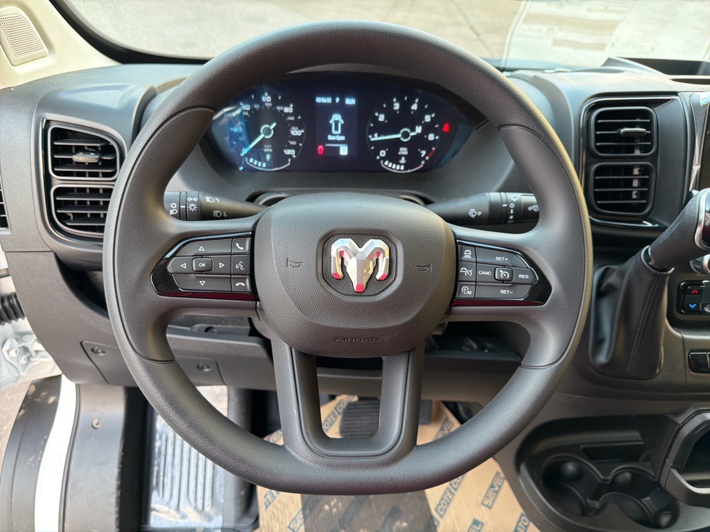 r Package 22B Tradesman (4-Way Manual Adjust Front Passenger Seat and Passenger Bucket Seat), Safety Group (Blind Spot & Cross Path Detection, Digital Rearview Mirror w/Autodim, Intelligent Speed Assist (ISA), Lane Departure Warning Plus, and ParkSense Front/Rear Park Assist System), 4 Speakers, 4-Wheel Disc Brakes, 4.08 Axle Ratio, 4G LTE Wi-Fi Hotspot, ABS brakes, Adaptive Cruise Control w/Stop & Go, Air Conditioning, AM/FM radio: SiriusXM, Apple CarPlay, Apple CarPlay/Android Auto, Black/Gray Seats, Bodyside moldings, Brake assist, Cloth Bucket Seats, Connectivity - US/Canada, Driver door bin, Driver Seat Armrest, Driver's Seat Mounted Armrest, Electronic Stability Control, Exterior Mirrors w/Heating Element, Exterior Mirrors w/Supplemental Signals, For Details, Visit DriveUconnect.com, For More Info, Call 800-643-2112, Front anti-roll bar, Front Bucket Seats, Front License Plate Bracket, Front reading lights, Front wheel independent suspension, Global Telematics Box Module (TBM), Google Android Auto, GPS Antenna Input, Heavy Duty Suspension, Illuminated entry, Integrated Center Stack Radio, Low tire pressure warning, Outside temperature display, Overhead airbag, Overhead console, ParkView Rear Back-Up Camera, Passenger door bin, Power Adjust Mirrors, Power Folding/Heated Mirrors, Power steering, Power windows, Power-Adjustable Convex Aux Mirrors, Power-Folding Mirrors, Radio: Uconnect 5 w/7" Display, Remote keyless entry, SiriusXM Radio Service, Steering wheel mounted audio controls, Tachometer, Telescoping steering wheel, Traction control, Trip computer, Turn signal indicator mirrors, Variably intermittent wipers, Wheel Center Cap, and Wheels: 16" x 6.0" SteeL.