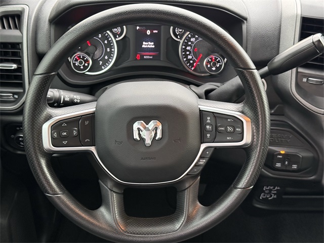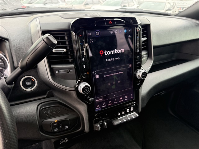 Axle, Apple CarPlay/Android Auto, Auto-Dimming Rear-View Mirror, Black Exterior Mirrors, Brake assist, Bright Front Bumper, Bright Rear Bumper, Carpet Floor Covering, Center Hub, Chrome Grille Surround, Cloth 40/20/40 Bench Seat, Commercial Features Package, Connected Travel & Traffic Services, Connectivity - US/Canada, Delay-off headlights, Disassociated Touchscreen Display, Dual front impact airbags, Dual front side impact airbags, Electronic Stability Control, Emergency Vehicle Alert System (EVAS), Exterior 115V AC Outlet, Exterior Mirrors Courtesy Lamps, Exterior Mirrors w/Heating Element, Exterior Mirrors w/Supplemental Signals, Front & Rear Floor Mats, Front anti-roll bar, Front Armrest w/Cupholders, Front Center Armrest w/Storage, Front fog lights, Front reading lights, Fully automatic headlights, Global Telematics Box Module (TBM), Google Android Auto, GPS Antenna Input, GPS Navigation, HD Radio, Heavy Duty Vinyl 40/20/40 Split Bench Seat, Illuminated entry, Integrated Voice Command w/Bluetooth, Low tire pressure warning, Manual Adjust 4-Way Driver Seat, Manual Adjust 4-Way Front Passenger Seat, Manual Folding Exterior Mirrors, Manual Telescoping Mirrors, Matte Black Mesh Grille w/Chrome, Mirror Running Lights, Mopar Black Tubular Side Steps, Occupant sensing airbag, Off-Road Info Pages, Overhead airbag, Panic alarm, ParkSense Front/Rear Park Assist System, ParkView Rear Back-Up Camera, Passenger door bin, Power Adjust Mirrors, Power Adjustable Convex Aux Mirrors, Power Heated Folding Telescope Mirrors, Quick Order Package 2UA Tradesman, Radio: Uconnect 5 Nav w/12.0" Display, Rear anti-roll bar, Rear Folding Seat, Rear Power Sliding Window, Rear step bumper, Remote USB Port - Charge Only, Selectable Tire Fill Alert, SiriusXM Radio Service, SiriusXM w/360L, Speed control, Storage Tray, Tilt steering wheel, Tinted Acoustic Windshield Glass, Traction control, Tradesman Level 2 Equipment Group, Trailer Tow Pages, Variably intermittent wipers, Wheels: 18" x 8.0" Steel Chrome Clad. CARFAX One-Owner.