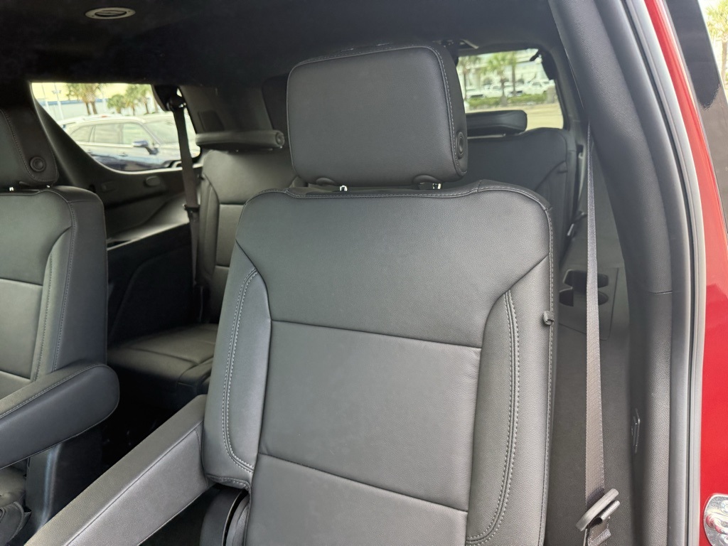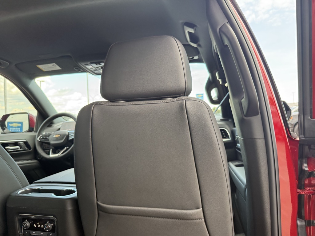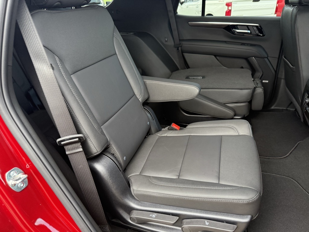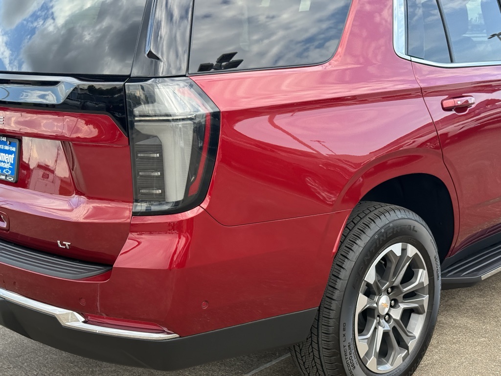 ith CenterPoint, (DXR) outside heated power-adjustable, power-folding, body-color mirrors with driver-side auto-dimming and integrated turn signal indicators, (KI3) heated steering wheel, (KA6) second row outboard heated seats, (ATT) second row power 60/40 split-folding bench seats, (AS8) third row power 60/40 split-folding bench seats, (TGE) LED animated headlamps and (TAU) LED animated tail lamps (Also includes (WPL) Luxury Package content. WHEELS, 20 X 9 (50.8 CM X 22.9 CM) MACHINED ALUMINUM WIT CHARCOAL POCKETS, SEATS, SECOND ROW BUCKET, POWER RELEASE, ENGINE, 5.3L ECOTEC3 V8 with Dynamic Fuel Management, Direct Injection and Variable Valve Timing, includes aluminum block construction (355 hp [265 kW] @ 5600 rpm, 383 lb-ft of torque [518 Nm] @ 4100 rpm) (STD), TRANSMISSION, 10-SPEED AUTOMATIC electronically controlled with overdrive, includes Traction Select System including tow/haul (STD), AUDIO SYSTEM, 17.7 DIAGONAL ADVANCED COLOR LCD DISPLAY with Google built-in compatibility (select service plan required, terms and limitations apply), including navigation capability, connected apps, personalized profiles for each drivers settings, Natural Voice Recognition and Phone Integration (STD), LUXURY PACKAGE includes (DD8) Inside rearview auto-dimming mirror, (UG1) Universal Home Remote and (T40) LED front fog lamps. Chevrolet LT with Radiant Red Tintcoat exterior and Jet Black interior features a 8 Cylinder Engine with 355 HP at 5600 RPM*.