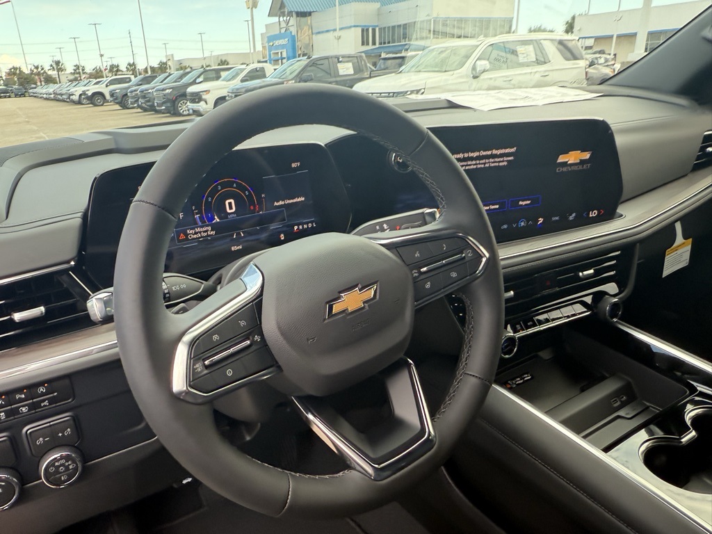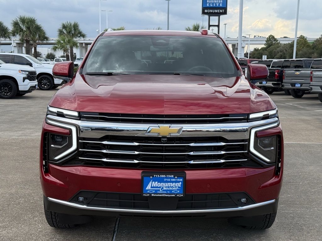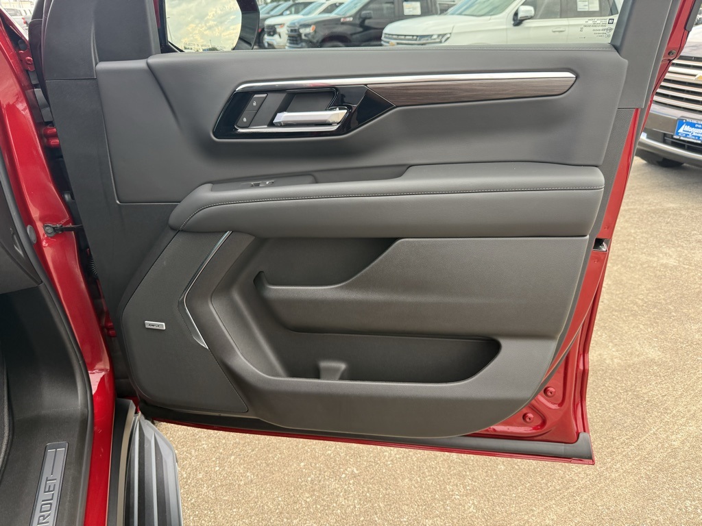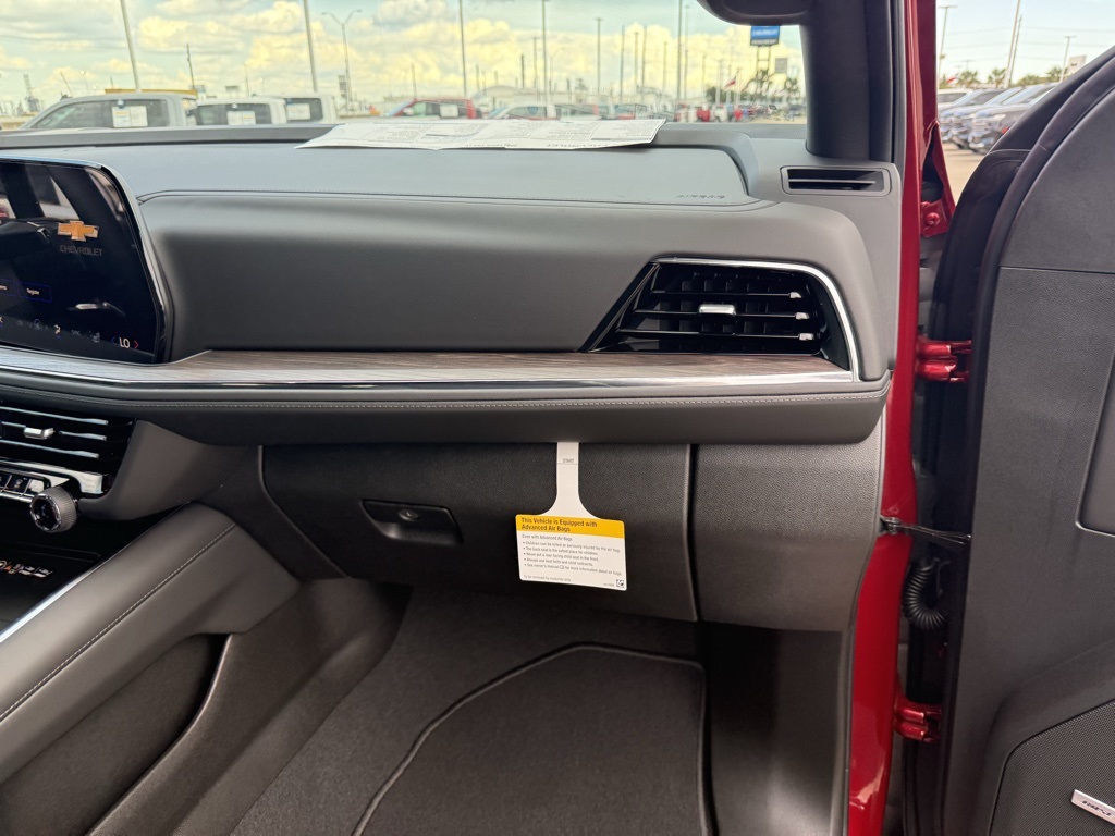 ith CenterPoint, (DXR) outside heated power-adjustable, power-folding, body-color mirrors with driver-side auto-dimming and integrated turn signal indicators, (KI3) heated steering wheel, (KA6) second row outboard heated seats, (ATT) second row power 60/40 split-folding bench seats, (AS8) third row power 60/40 split-folding bench seats, (TGE) LED animated headlamps and (TAU) LED animated tail lamps (Also includes (WPL) Luxury Package content. WHEELS, 20 X 9 (50.8 CM X 22.9 CM) MACHINED ALUMINUM WIT CHARCOAL POCKETS, SEATS, SECOND ROW BUCKET, POWER RELEASE, ENGINE, 5.3L ECOTEC3 V8 with Dynamic Fuel Management, Direct Injection and Variable Valve Timing, includes aluminum block construction (355 hp [265 kW] @ 5600 rpm, 383 lb-ft of torque [518 Nm] @ 4100 rpm) (STD), TRANSMISSION, 10-SPEED AUTOMATIC electronically controlled with overdrive, includes Traction Select System including tow/haul (STD), AUDIO SYSTEM, 17.7 DIAGONAL ADVANCED COLOR LCD DISPLAY with Google built-in compatibility (select service plan required, terms and limitations apply), including navigation capability, connected apps, personalized profiles for each drivers settings, Natural Voice Recognition and Phone Integration (STD), LUXURY PACKAGE includes (DD8) Inside rearview auto-dimming mirror, (UG1) Universal Home Remote and (T40) LED front fog lamps. Chevrolet LT with Radiant Red Tintcoat exterior and Jet Black interior features a 8 Cylinder Engine with 355 HP at 5600 RPM*.