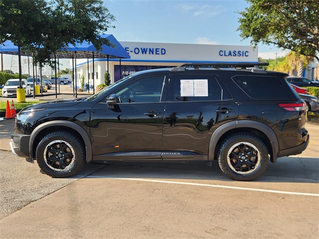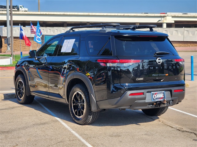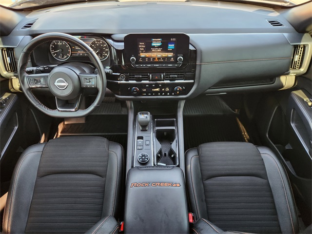 CARFAX One-Owner. Clean CARFAX. Super Black 2024 Nissan Pathfinder Rock Creek 4WD 9-Speed Automatic 3.5L V6 DOHC LOCAL TRADE, CARFAX 1 OWNER, CLEAN CARFAX, NON SMOKER, 4WD, NAVIGATION, MOONROOF, KEYLESS ENTRY, REMOTE START, APPLE CARPLAY, ANDROID AUTO, SIRIUS XM RADIO, AM/FM/HD RADIO, BLUETOOTH HANDS FREE CALLING, FRONT USB CHARGING PORTS, MP3 IPOD COMPATIBLE, AUTO HEADLIGHTS, DAYTIME RUNNING LIGHTS, BLIND SPOT WARNING SYSTEM, LANE DEPARTURE WARNING SYSTEM, POWER ADJUSTABLE DRIVERS SEAT, LEATHER