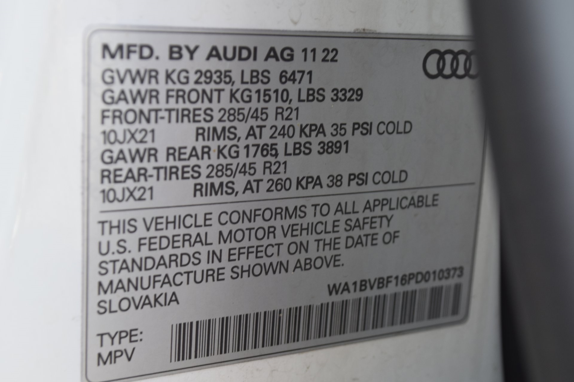 WA1BVBF16PD010373Stock #