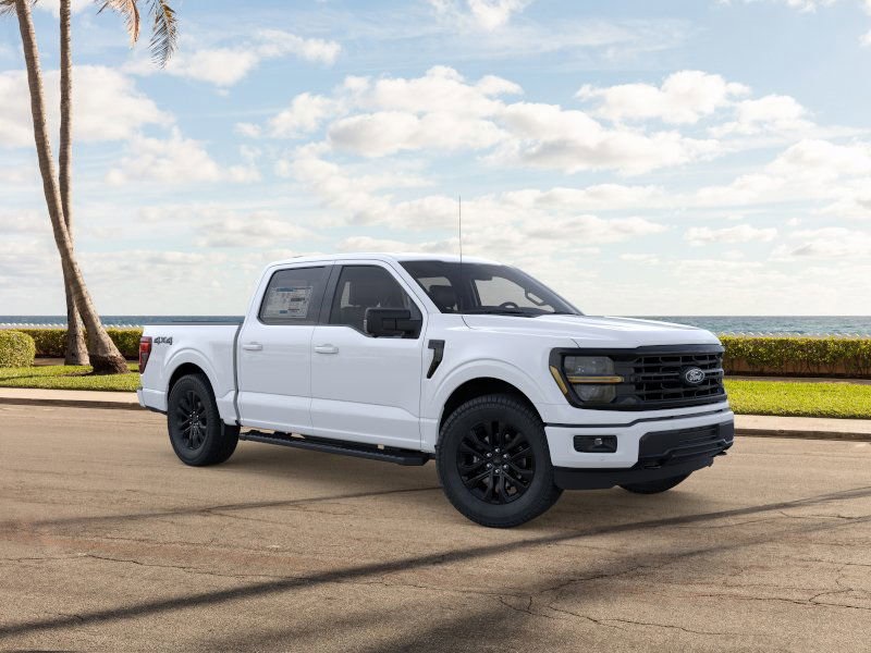 This 2025 Ford F-150 XLT in Oxford White comes with the following features: 5.0L V8 10-Speed Automatic 4WD Equipment Group 302A Mid (360 Degree Camera, 400W Cab & Bed Outlets, 6" Angular Bright Anodized Step Bar, Adaptive Cruise Control w/Stop & Go, Auto-Dimming Rear-View Mirror, Black Painted Grille w/Chrome Center Bar, Chrome Door & Tailgate Handles, Chrome Single-Tip Exhaust, Cloth 40/Console/40 Front Seats, Connec