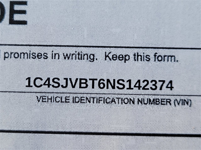 1C4SJVBT6NS142374Stock #