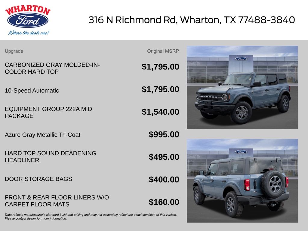 Azure Gray Metallic Tri-Coat 2025 Ford Bronco Big Bend 4WD 10-Speed Automatic 2.3L EcoBoost I-4